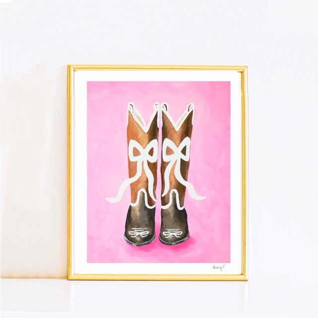 Print | Signed Print Limited Edition Cowboy Boots with White Bow