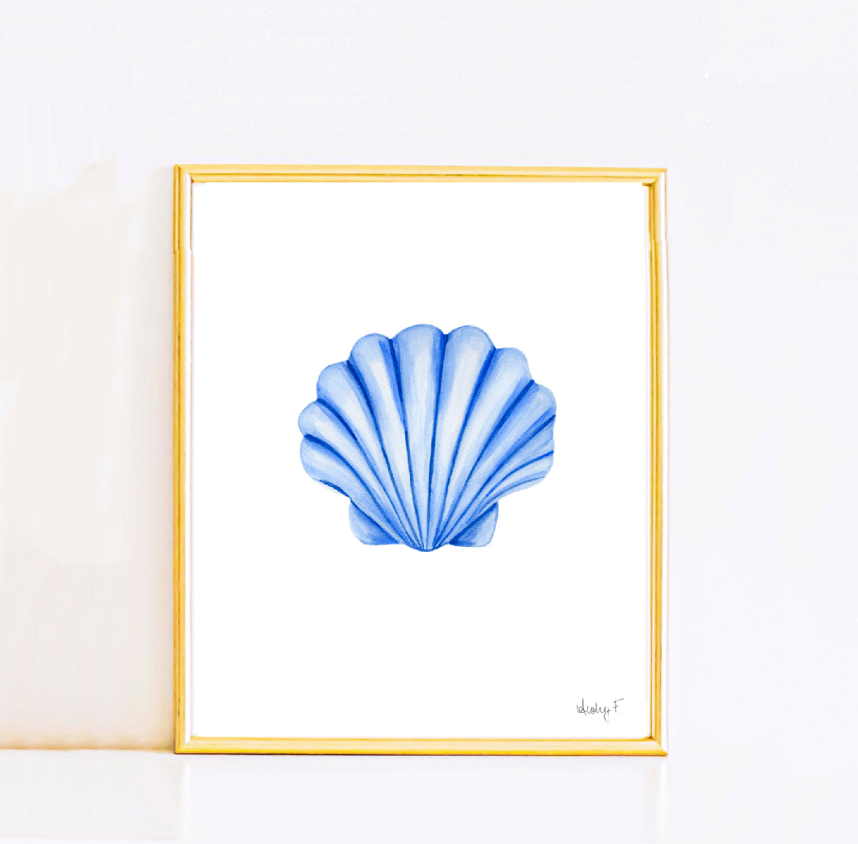 Bring a touch of the ocean into your home with this serene blue seashell watercolor print. Hand-painted with delicate brushstrokes and cool coastal tones, this artwork captures the calm and beauty of beachside living. Perfect for adding a breezy, nautical vibe to your gallery wall, bathroom, nursery, or beach house.