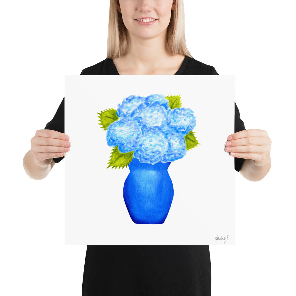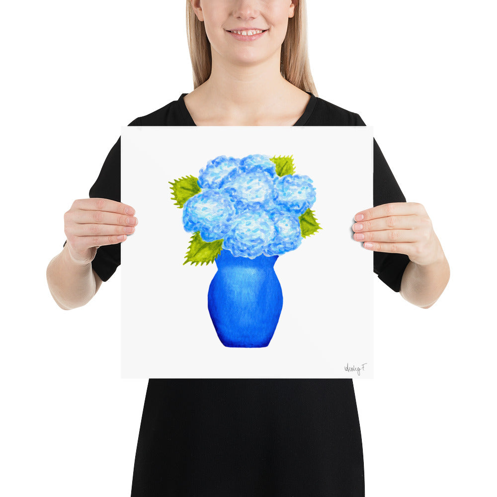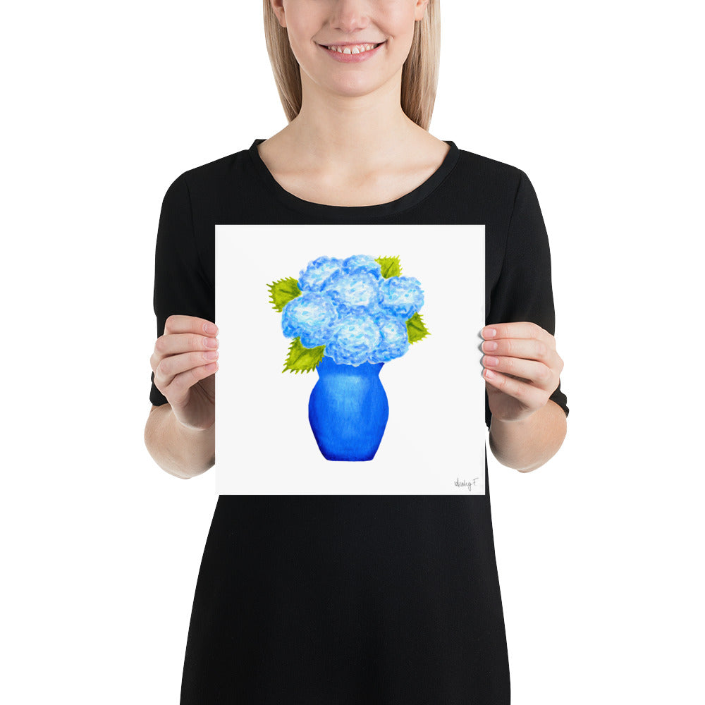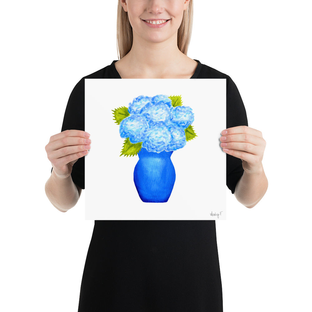 Print | Blue Hydrangea Blooms in Blue Vase | Various Sizes