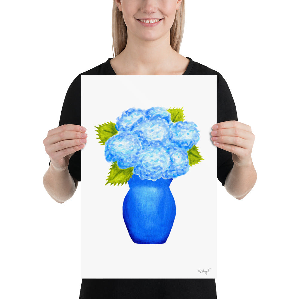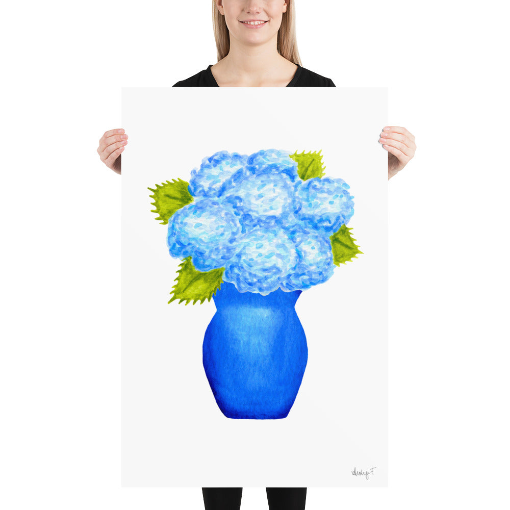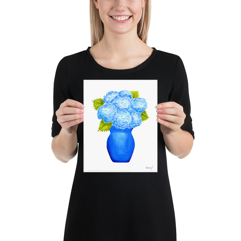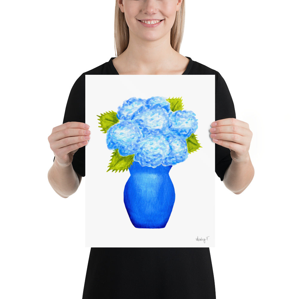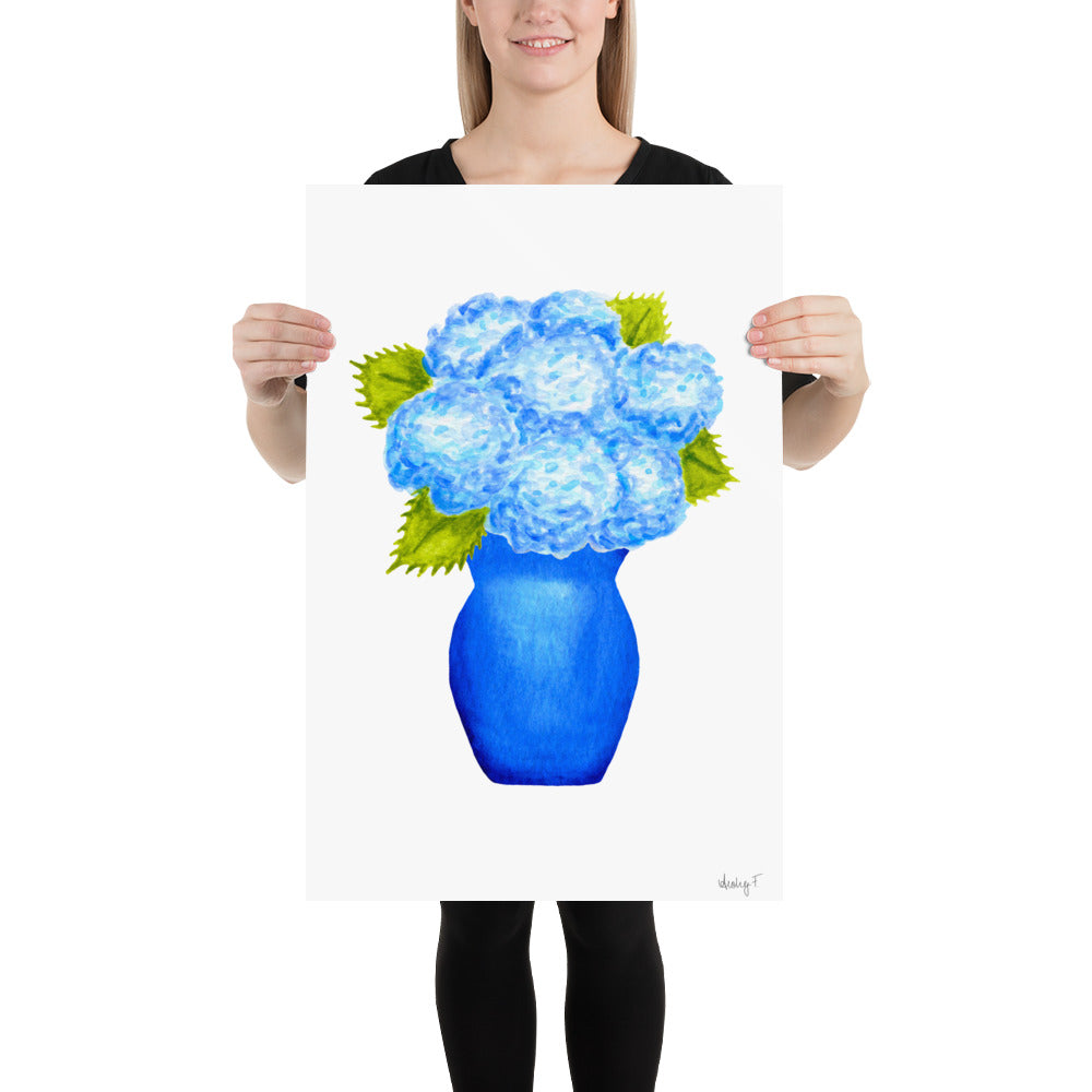 Print | Blue Hydrangea Blooms in Blue Vase | Various Sizes