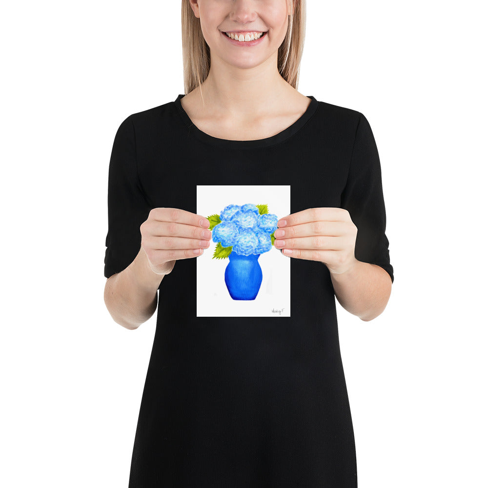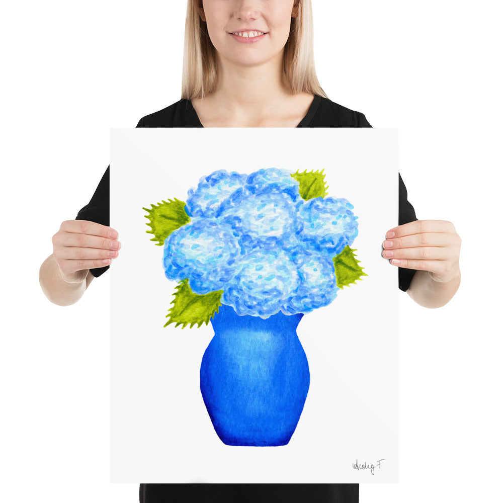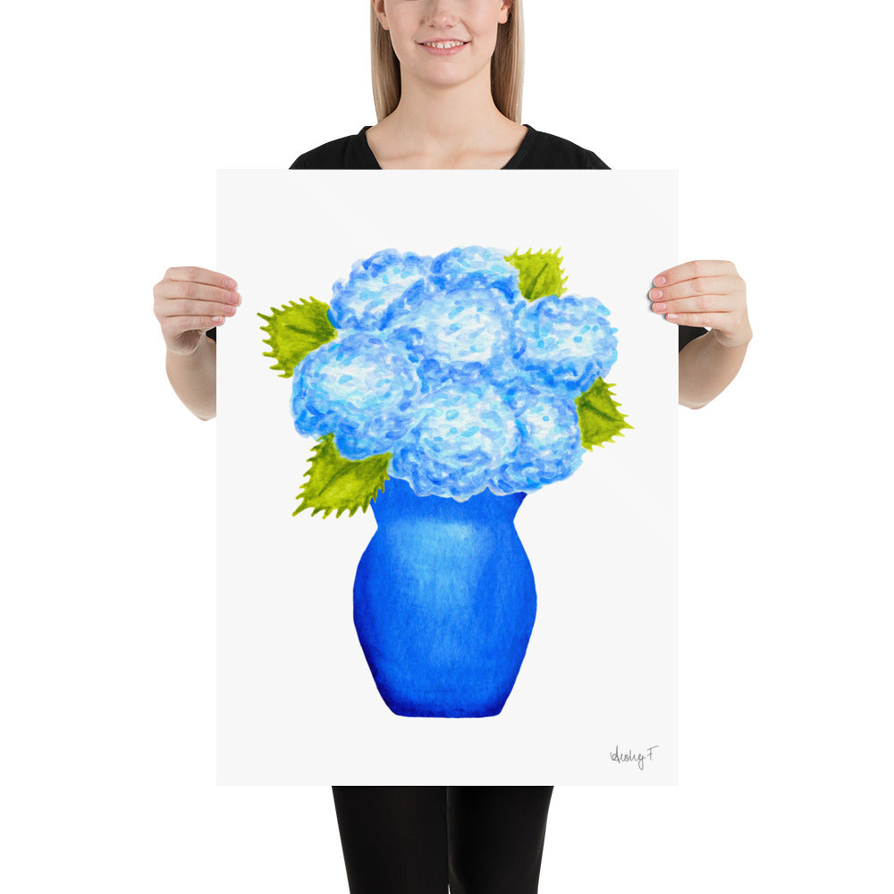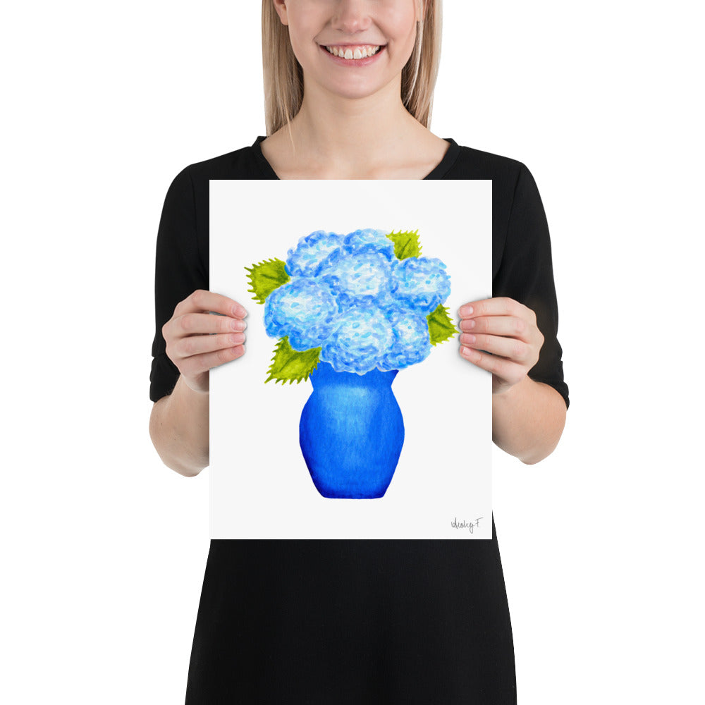 Print | Blue Hydrangea Blooms in Blue Vase | Various Sizes