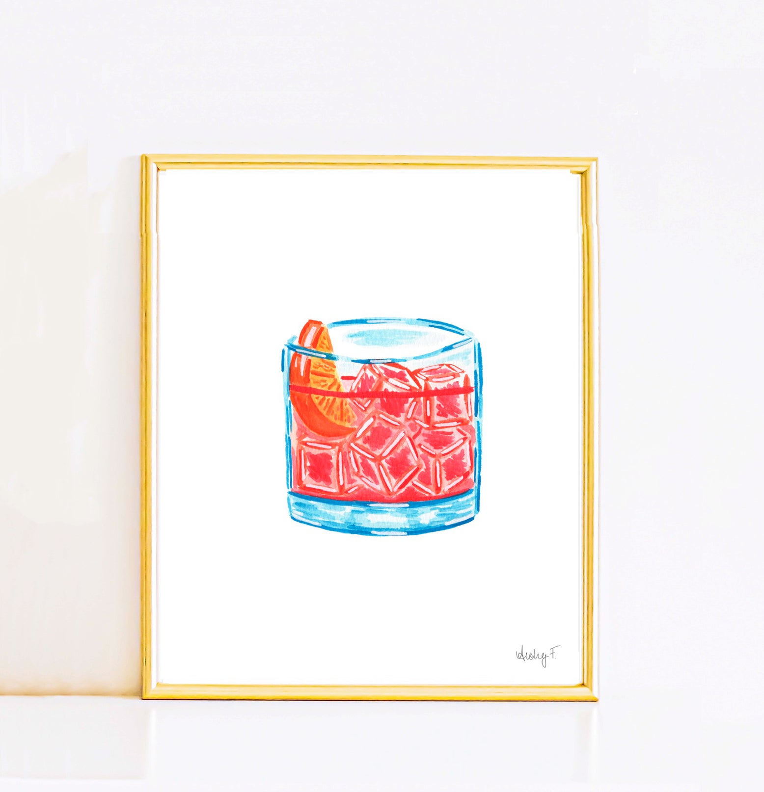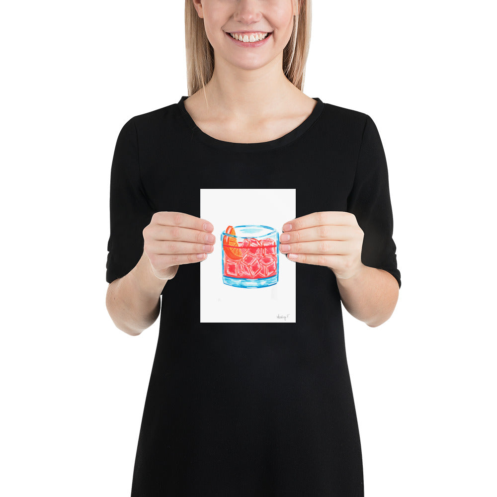 Print | Negroni Cocktail Watercolor | Bar Cart Kitchen Art Poster