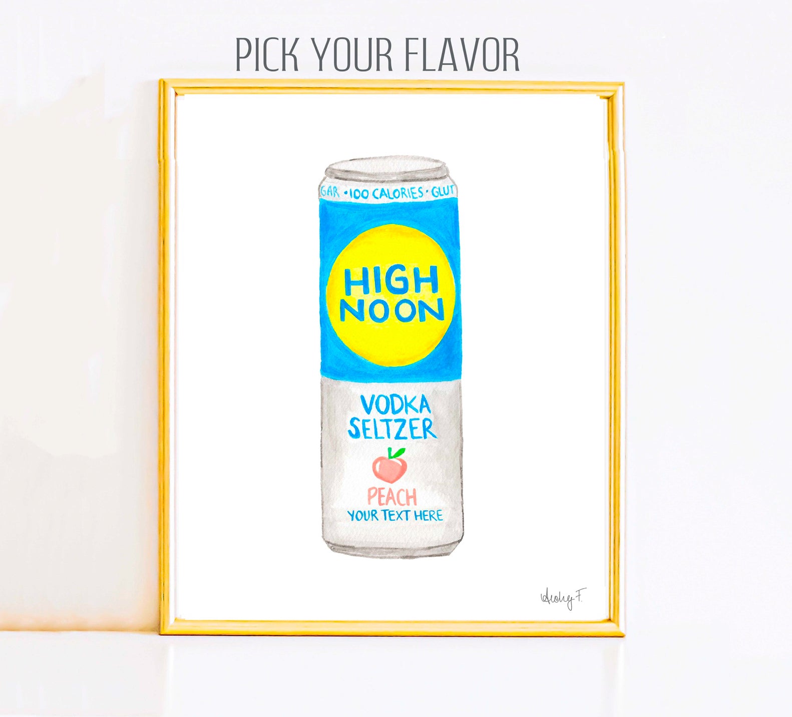 Brighten your space with this delightful watercolor print of a High Noon Vodka Seltzer can in the flavor of your choice. Hand-painted with care, then digitized this piece captures the essence of summer fun and laid-back vibes.
