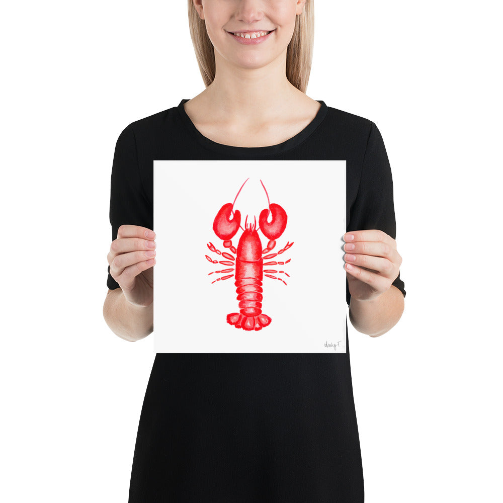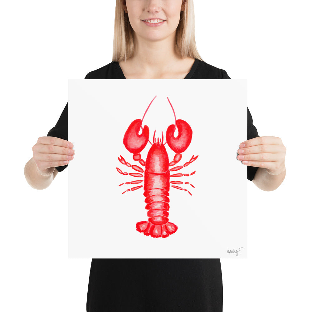 Print | Red Lobster Watercolor | Coastal Nautical Ocean Decor Wall Art | New England Nantucket Capecod