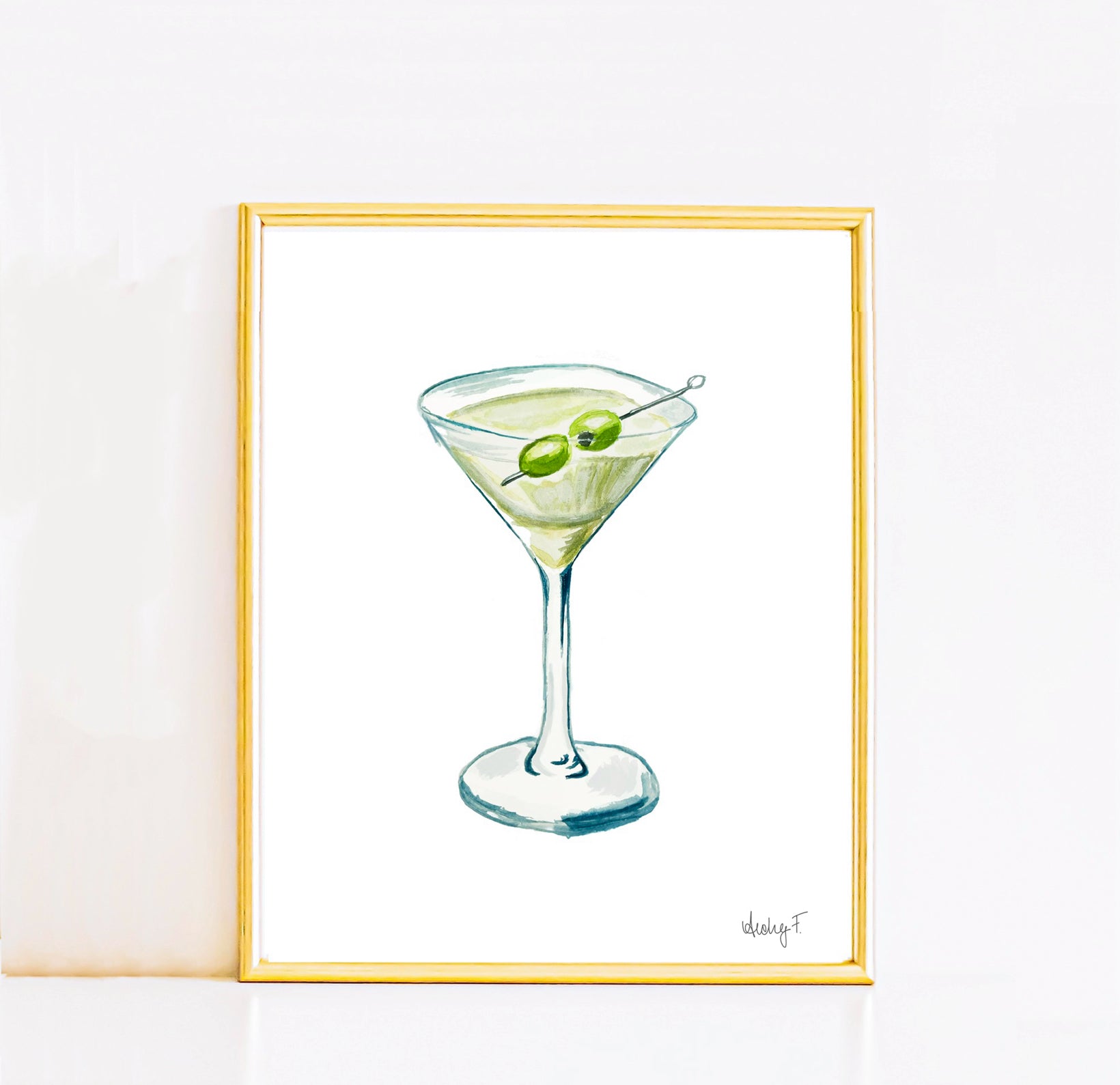 Print | Watercolor Martini Glass Painting | Bar Car Art | Cocktail Designs | Various Sizes