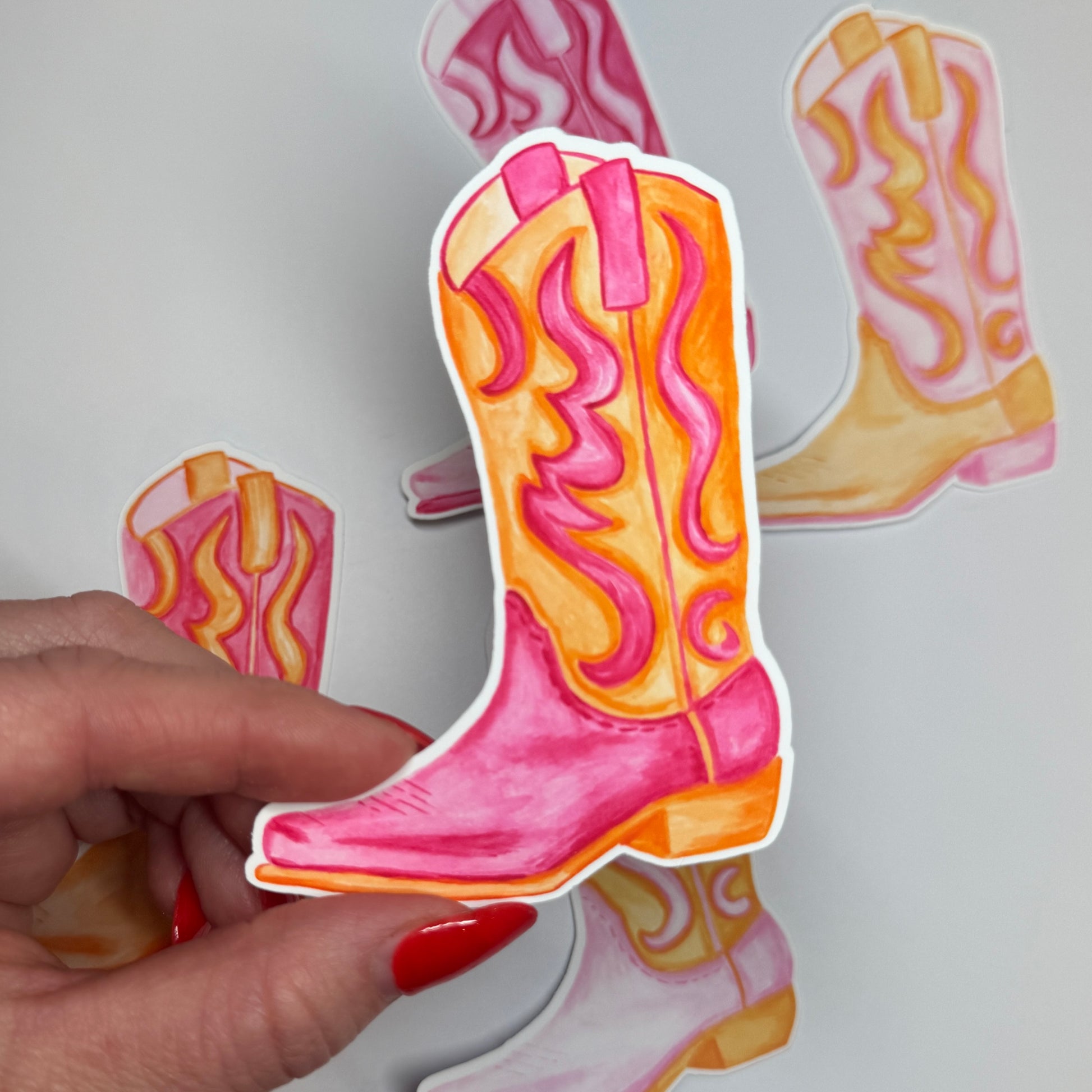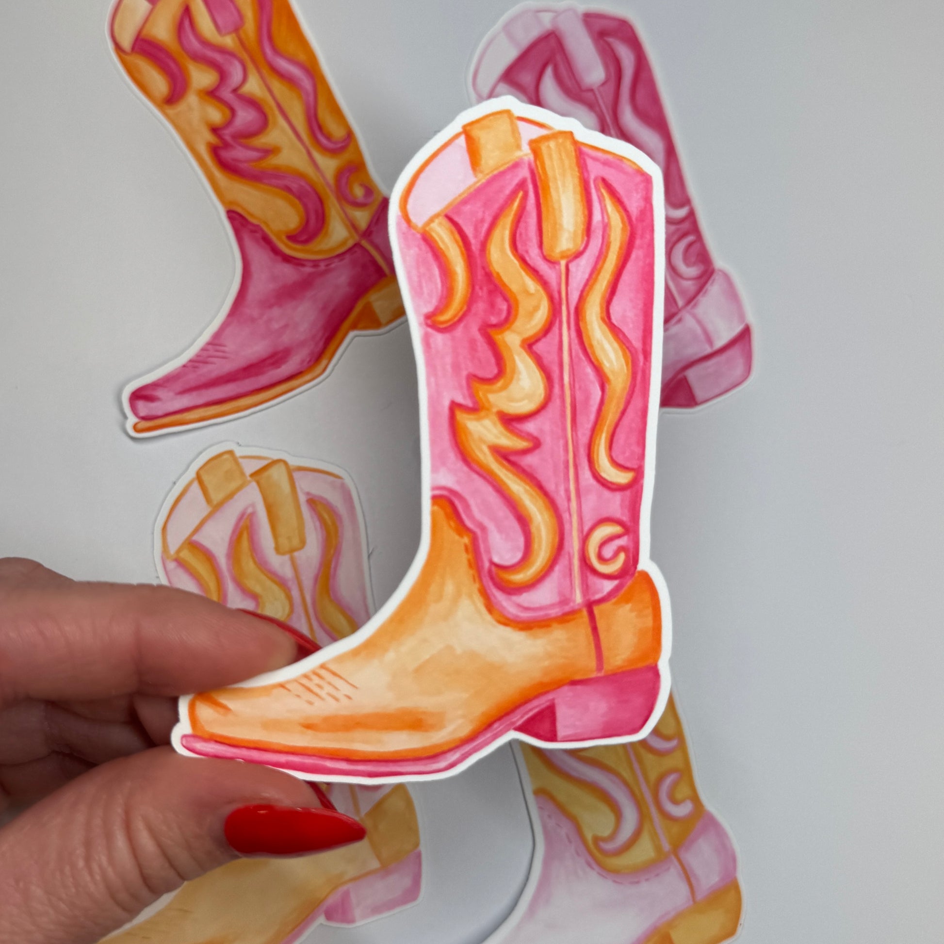 Sticker | Vinyl Matte Hot Pink & Orange Watercolor Cowboy Boot 3.5”