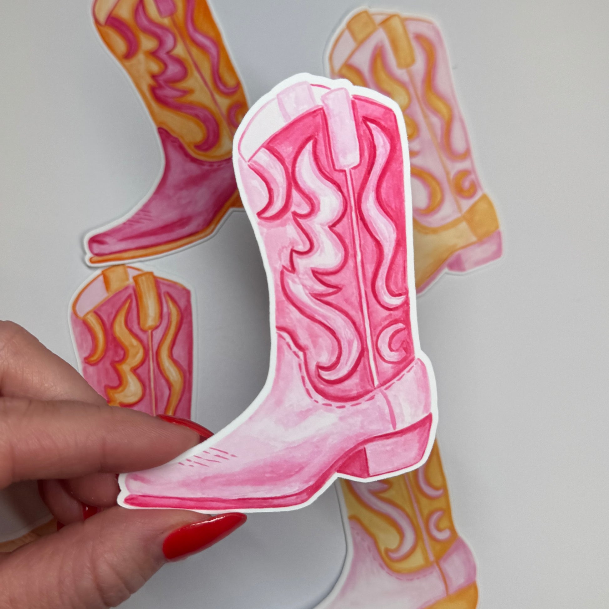 Printed on durable matte vinyl, this sticker is waterproof, weather-resistant, and long-lasting—perfect for decorating water bottles, laptops, phone cases, journals, or even your favorite tumbler. Each boot is based on original watercolor artwork, giving it a unique hand-painted look that stands out from mass-produced designs.